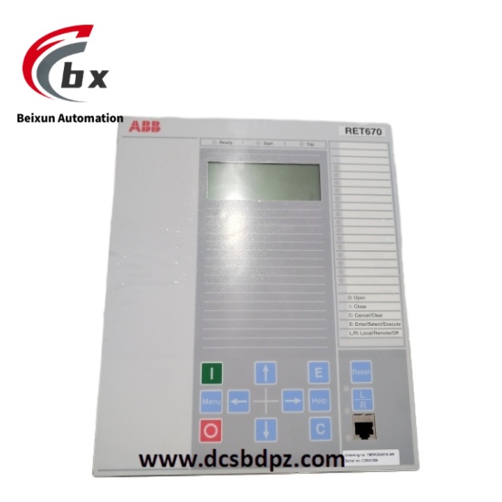 ABB RET670 is a transformer protection relay, belonging to ABB's Relion® protection and control product family. It is specifically designed for comprehensive transformer protection and can protect transformers and other power system equipment from various faults and abnormal conditions. It can provide fast and customizable protection, monitoring and control functions for two - winding transformers, three - winding transformers, autotransformers and shunt reactors. The relay has advanced communication capabilities and can be integrated with substation automation systems or operate as an independent multi - functional device.